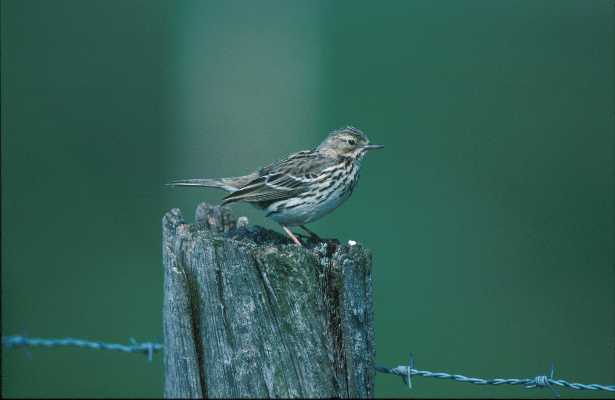 Haltung seiner Flügel und gespreizten Schwanzfedern unter leisen „dzi dzi dzi“ - Rufen auf seine Singwarte zurückgleiten. Der Wiesenpieper ist ein typischer Brutvogel des offenen Grünlandes, sowie auch etwas feuchter Heidegebiete mit nicht sehr hoher Vegetation. In milden Wintern verbleiben viele Wiesenpieper in der Nähe ihrer Brutgebiete. Nur bei Kälteeinbrüchen weichen sie nach Südwest-Europa aus und können dann sogar Marokko erreichen. |