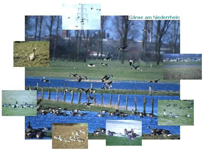 der kalten Jahreszeit die mit Abstand auffälligste Tierart am Unteren Niederrhein. Sie bestimmen zeitweise durch ihre enorme Anzahl ganz entscheidend das Bild der Acker- und Grünlandzonen entlang der Gewässer. Größere Landschaftsteile werden vollständig von ihnen dominiert, wenn sie diese in großen Schwärmen aufsuchen, und ihre unverkennbaren, schnatternden Laute dabei weithin hörbar sind. Zudem sind sie durch ihre charakteristischen, hakenförmigen Flugformationen vielerorts sehr